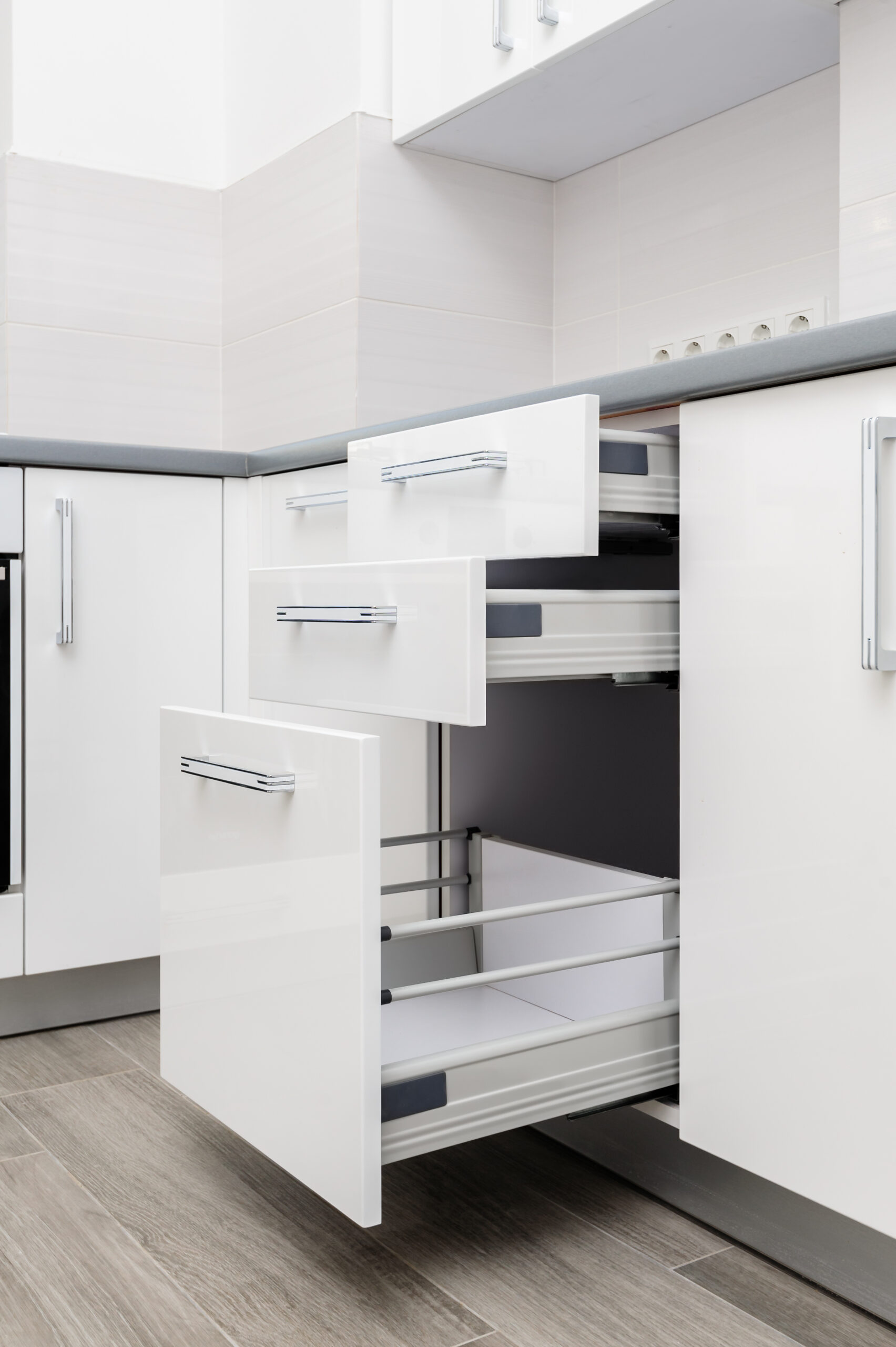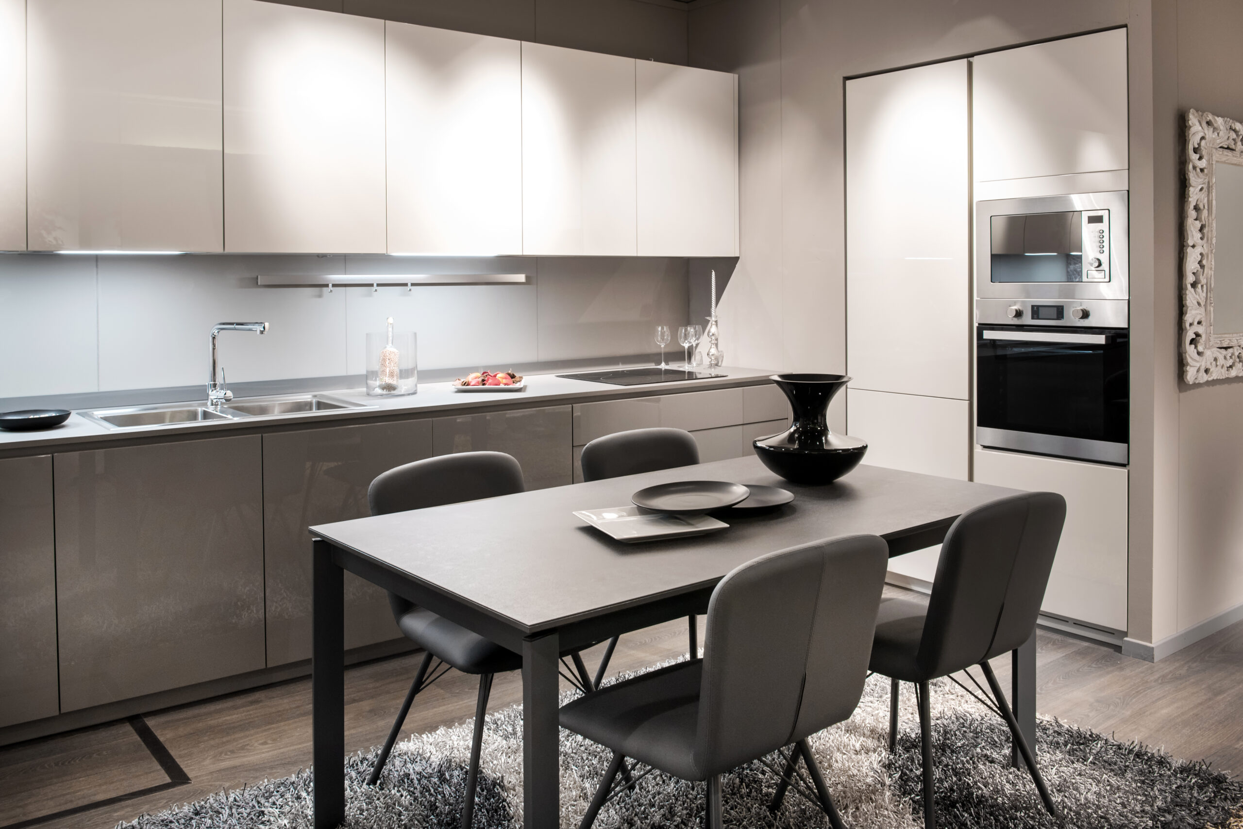 Modern white and black kitchen, minimalistic clean design